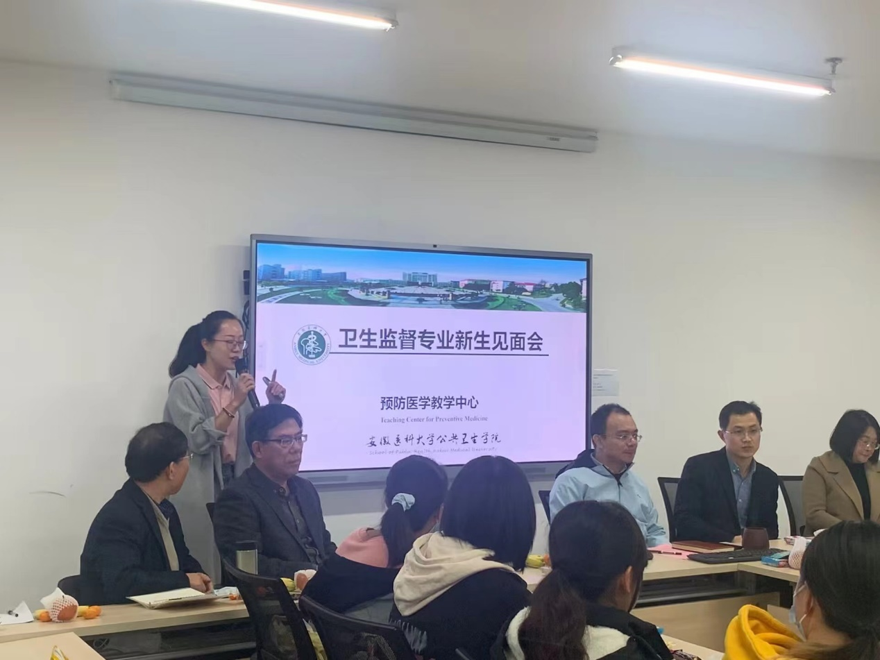 近日,预防医学教学中心在知行楼1704会议室召开了面向首届卫生监督专业学生的新生见面会,开讲了“专业第一课”。 学院副院长万宇辉出席会议并讲话。